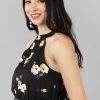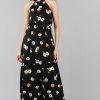 With a beautiful black floral print and a flared hemline, you’ll be sure to make a statement wherever you go.