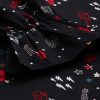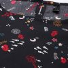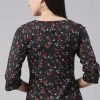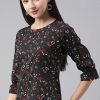 Black regular top, Conversational print, round neck, three-quarter sleeve.