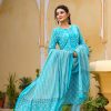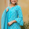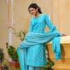 Vintageglam Women Blue & White Kurta Set With Pant Trousers And Dupatta is a blend of pure cotton fabric. The kurta set is a combination of striking ethnic designs and rich comfort fabric. The side slits and round neckline makes the kurta look classy. You can wear this straight pant kurta set to semi-formal occasions and small family gatherings to look gorgeous.