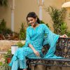 Look beautiful and polished, even during simple occasions, in this blue kurta set from Vintageglam. Wear this kurta set to evening events, pairing it with stunning, gold jewellery and accessories.