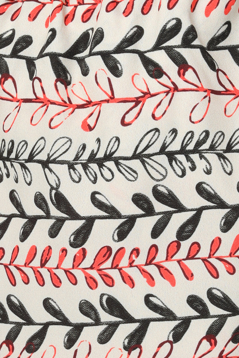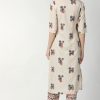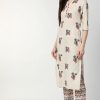Off-White and black printed kurta with trousers, mandarin collar, three-quarter sleeves, straight hem, side slits.