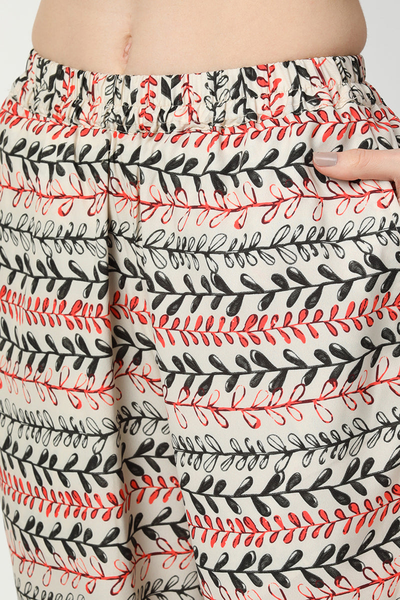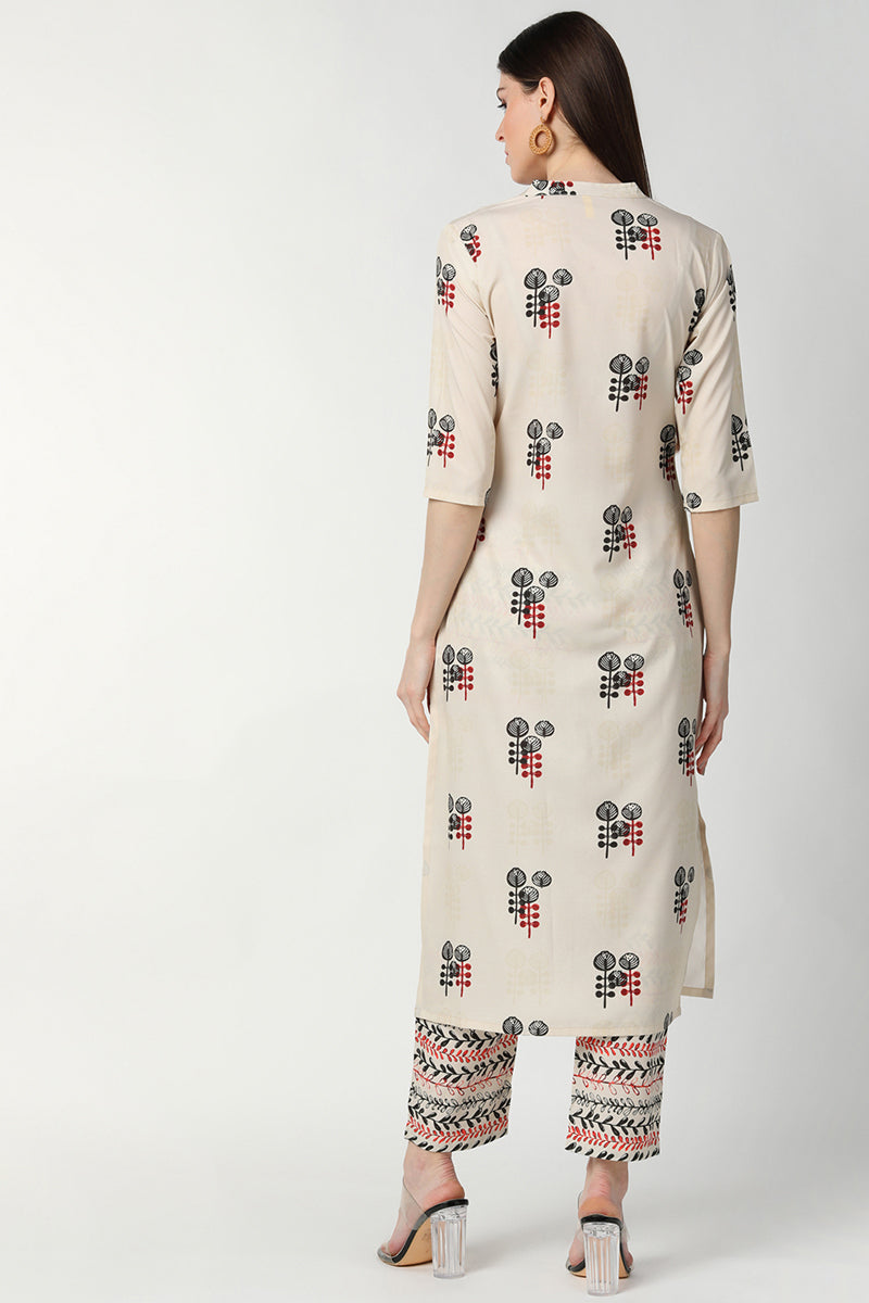 Off White Poly Crepe Printed Kurta Palazzo Set