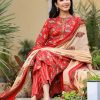 Adorn yourself in this beautiful red colour kurta palazzo dupatta set for the upcoming family function. This stunning red colour kurta and red palazzo set feature stunning detailed print work and design that catches the attention around you. The kurta palazzo set is accompanied by ethnic motifs print dupatta that adds exquisite elegance to the attire. Club this ethnic set with matching footwear and a bag to compliment your look.