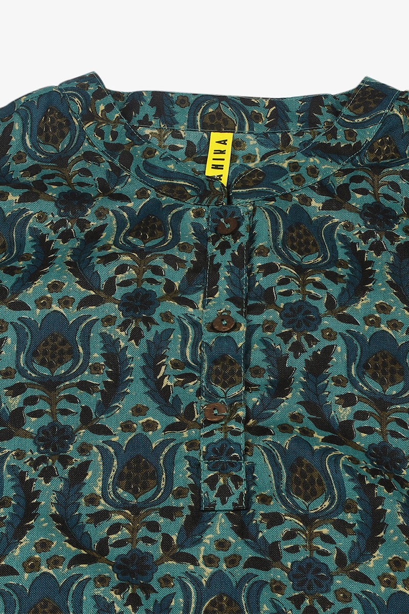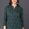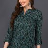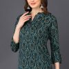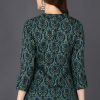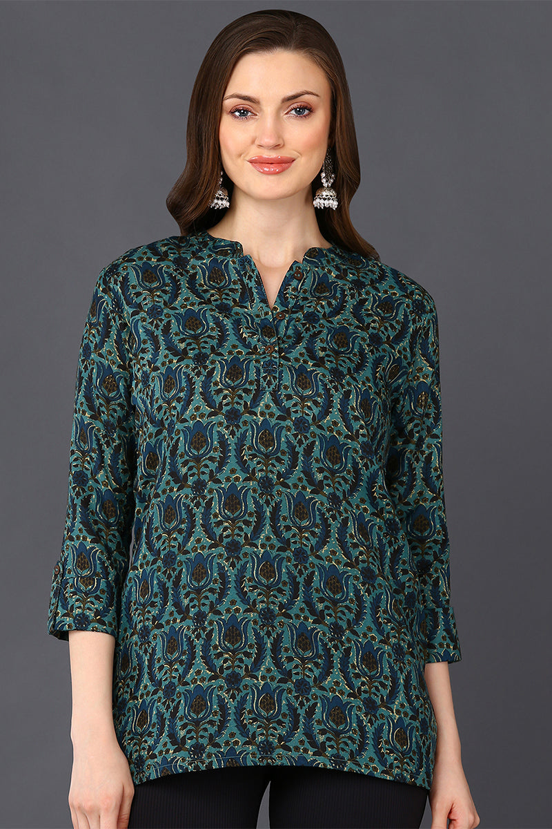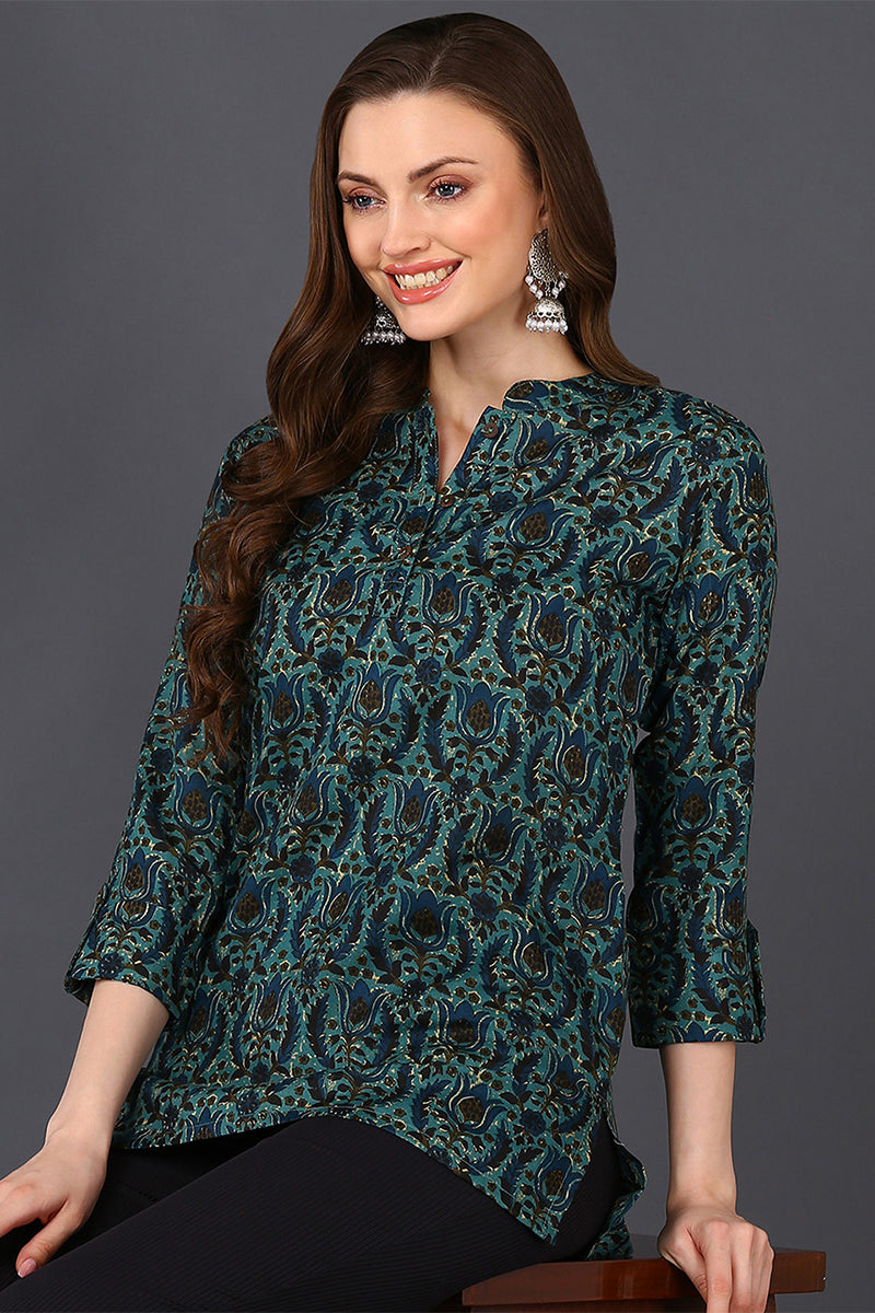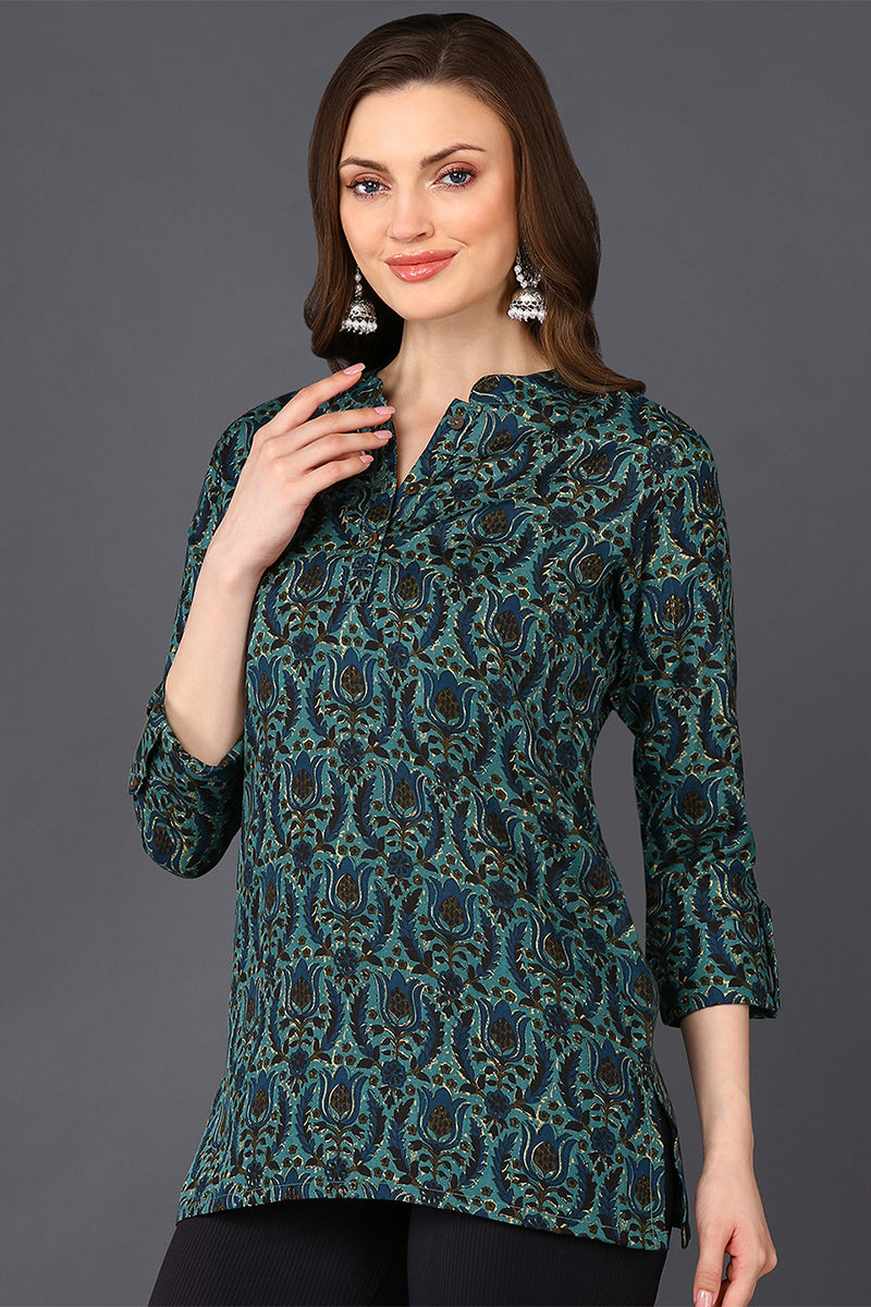 Teal Green Cotton Blend Ethnic Motifs Printed Straight Tunic